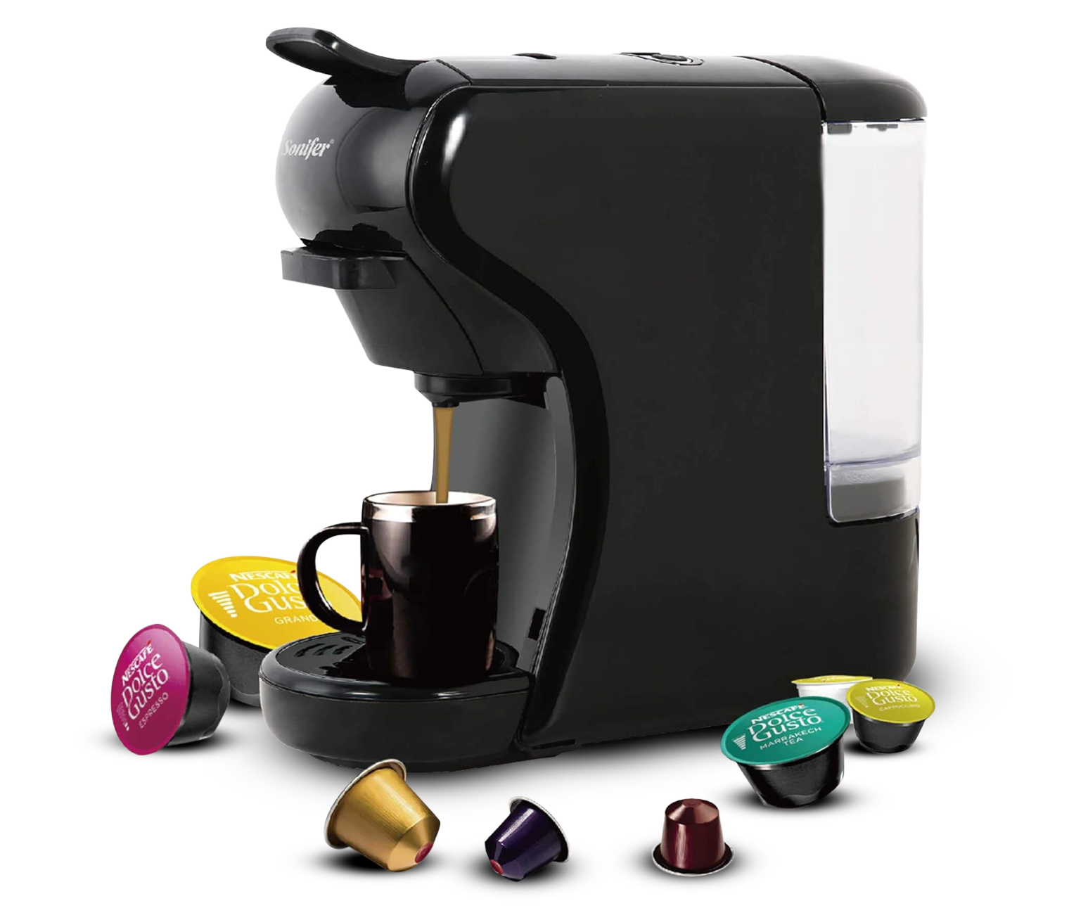 Puede utilizar junto con las cápsulas Nespresso, Dolce Gusto, además, puede utilizar café molido